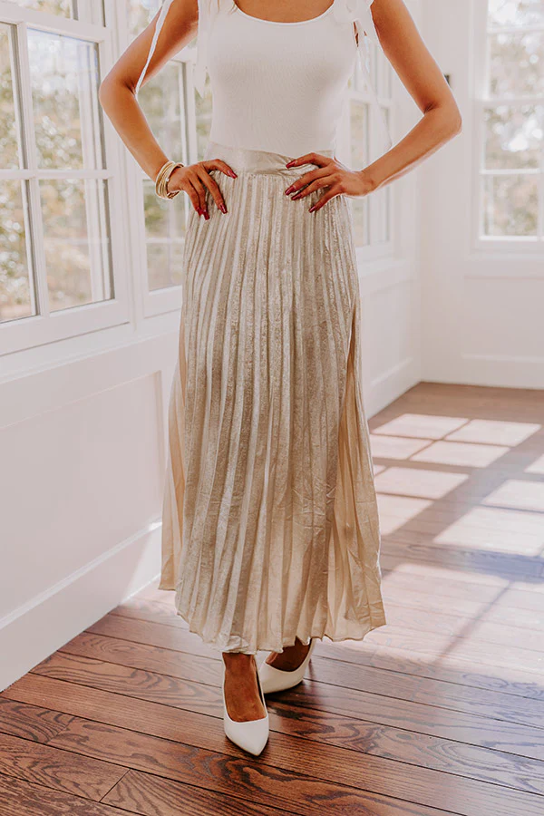 Champagne Fizz High Waist Pleated Maxi Skirt