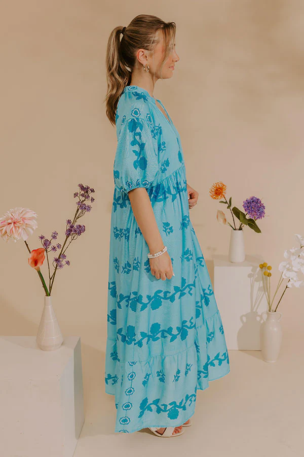 Cherished Moment Floral Midi Dress in Sky Blue
