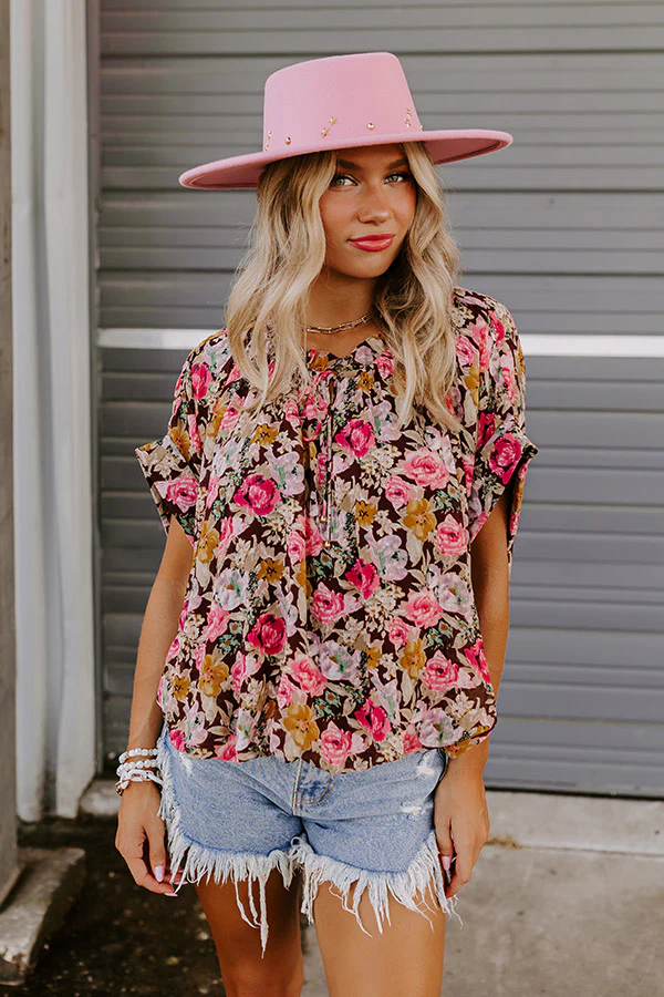 - Breezy chiffon material with an ivory, pink, and yellow hued floral print