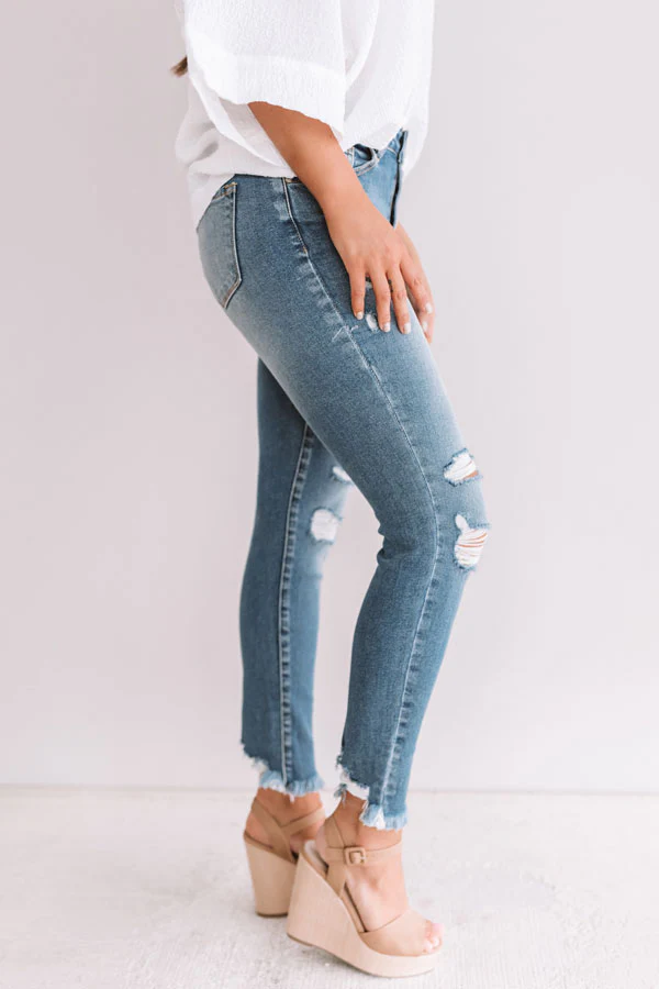 Who says you can't wear skinny jeans in warm weather? These are the perfect skinny jeans with the high waist and distressed detailing! They include belt loops with a hidden zip fly, button closure, and five pocket cuts! Pair with some cute wedges or sandals for the ultimate summer pants style!
