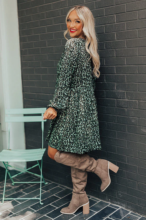 Compliments are sure to fly your way when you wear our green 'Maple Grove' shift dress featuring lightweight material patterned with a black and neutral leopard print, a three button front with a scooped v-cut neckline, long loose sleeves, hidden pockets, and a relaxed silhouette that falls into a straight mid-thigh length hemline!