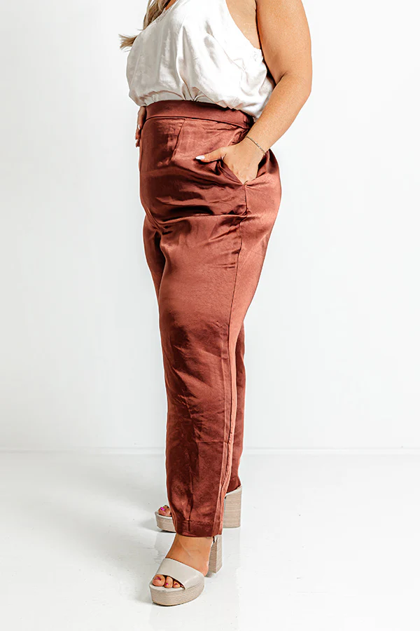 Pouring Merlot Satin High Waist Pants In Dark Rust Curves