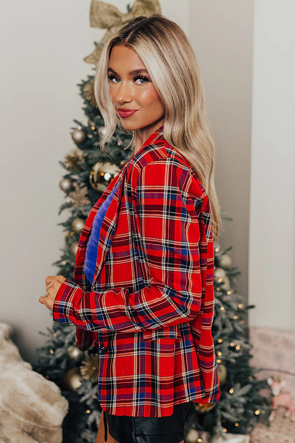 Red Wine Sipping Plaid Blazer