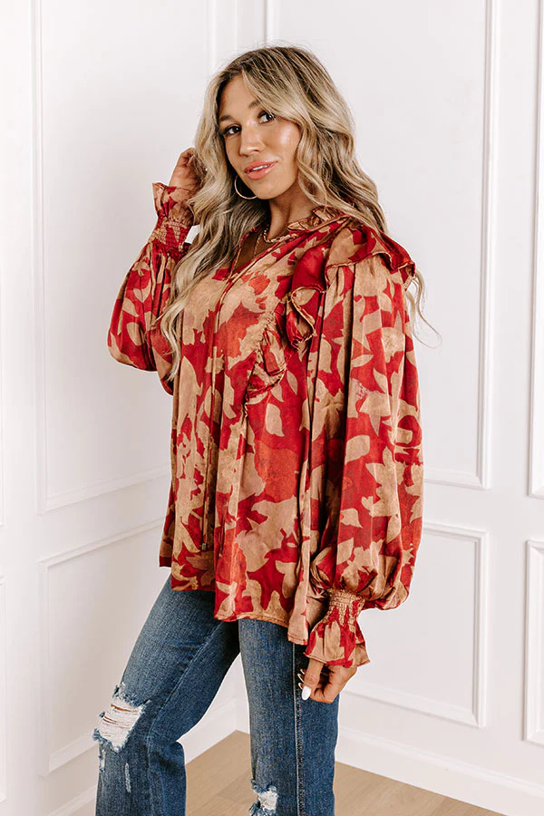 Set The Show Off Satin Ruffle Top