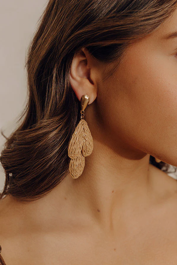 Sweet Glance Raffia Woven Earrings in Tan