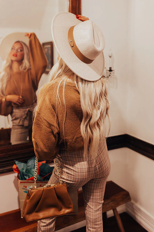 There is no better way to top off your look than with our adorable 'Sweetheart In The City Fedora' featuring lightweight birch colored material, a 4-inch brim, and a brown accent band!