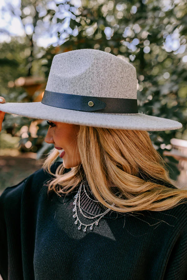 There is no better way to top off your look than with our adorable 'Sweetheart In The City Fedora' featuring lightweight grey material, a 4-inch brim, and a black accent band!