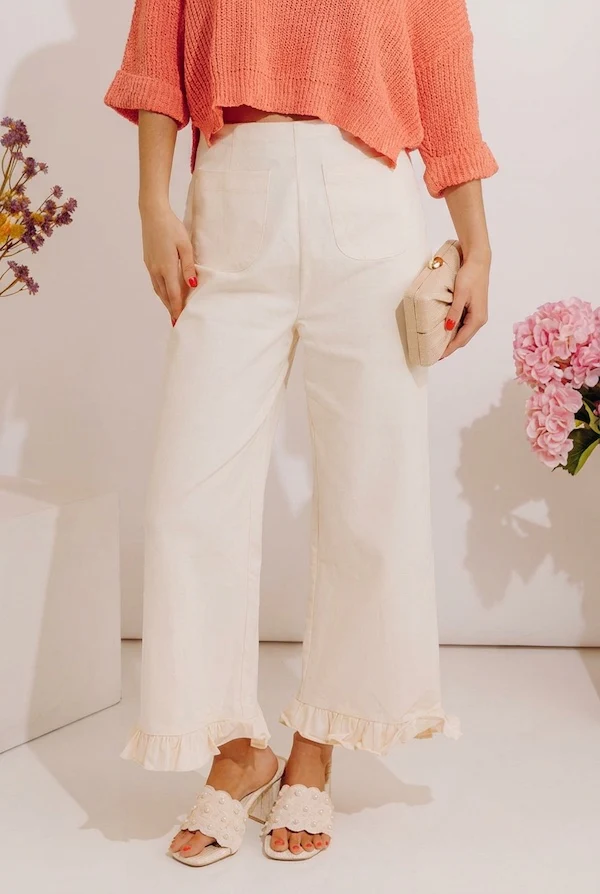 - Add a touch of feminine charm to your denim days with these trendy jeans featuring the cutest ruffled hems. The playful detail brings a fresh twist to your casual looks while keeping it effortlessly stylish.