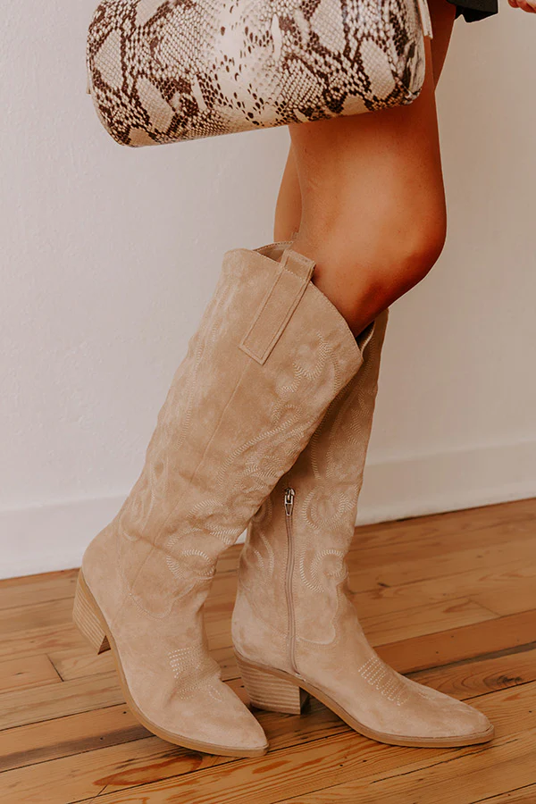 The Giada Faux Suede Cowboy Boot in Iced Latte