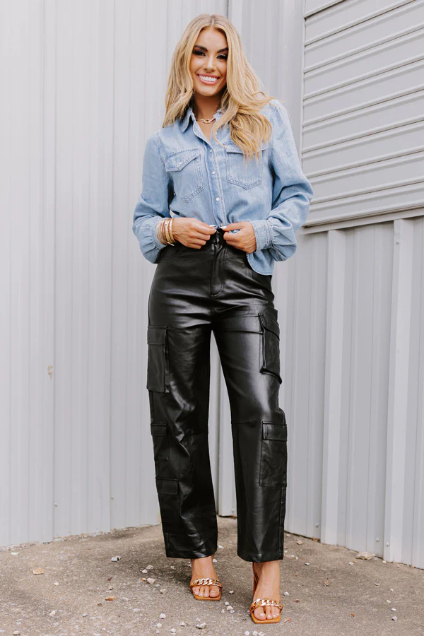 -70%The Jenika High Waist Faux Leather Cargo Pants—