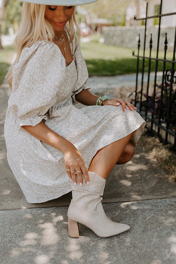 Our versatile iced latte colored 'Valley' bootie was made for walkin' with its faux leather material, pointed closed toes, block heels, and lightweight relaxed above-the-ankle silhouette! For a more comfortable fit, we recommend ordering a 1/2 size up from what you typically wear. For example, if you normally wear a size 7, we recommend ordering a size 7.5.