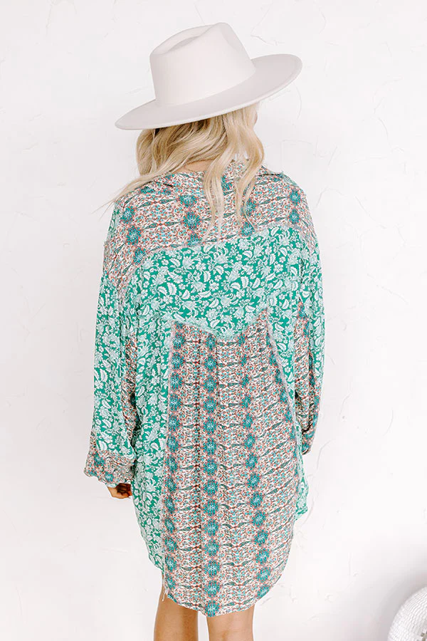 - Unlined soft material patterned with panels of a paisley and a floral print